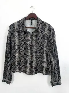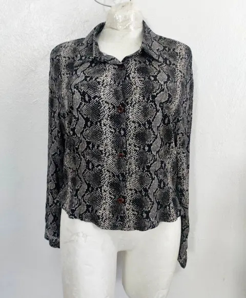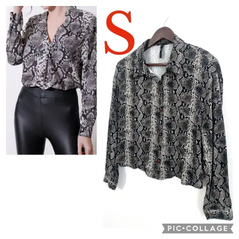 Blusa serpiente Zara S/M. PreciosaTalla 26 o "S"Sin detalles y en perfecto estado.De botones al frente y trae otro de repuesto.Luce bella y elegante.De axila a axila: 51 cmHombros: 49 cmLargo: 53 cmPor las medidas queda tambien a M, el maniquí es M.