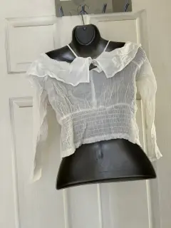 Padrísima blusa blanca, luce increíble con jeans o falda es muy fresca y amolda muy bien Talla S Es importada