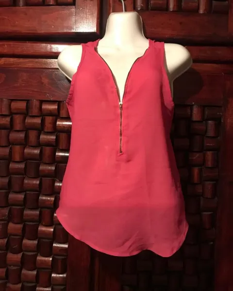 Blusa con transparencia en color rosa mexicano , talla S con cierre en la parte de enfrente , luce súper padre , el detalle es que tiene un pequeño hoyito en la parte de atrás pero muy poco visible se ve en la ultima foto