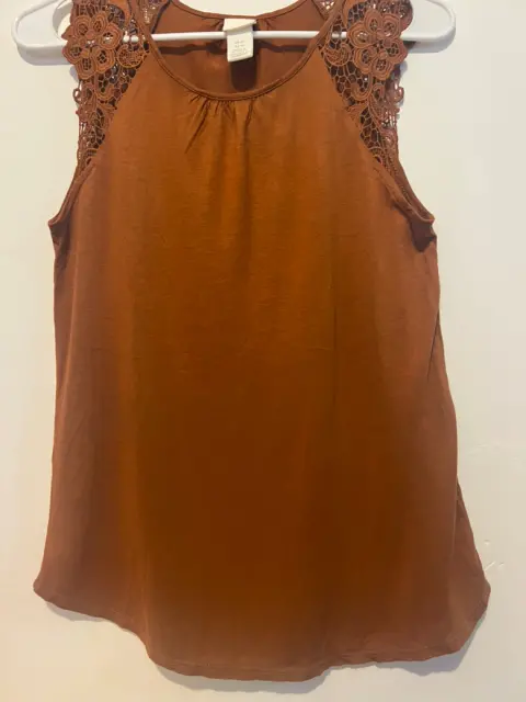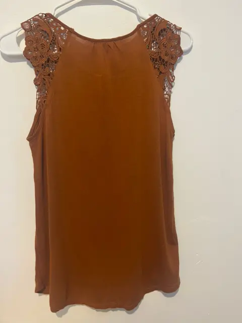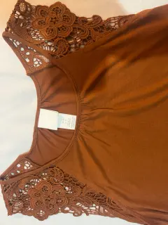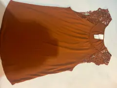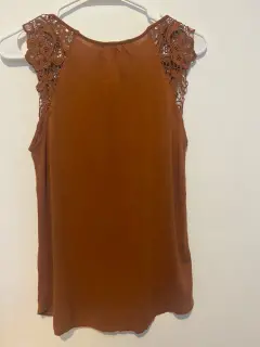Linda blusa sin manga , queda suelta al cuerpo , si no te gusta tráete cosas pegadas al cuerpo esta es para ti .Encaje en los hombros, color shedron en excelente estado .Talla : Xs