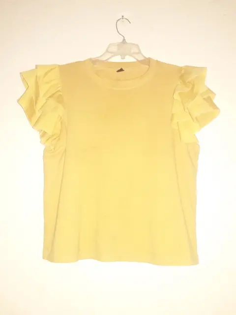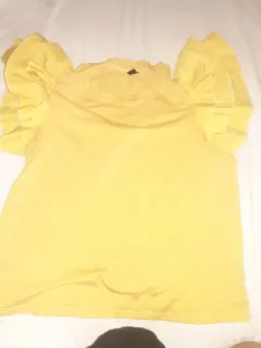 Linda blusa de shein color amarilla, tela de algodón, y con tres olanes en cada manga.
