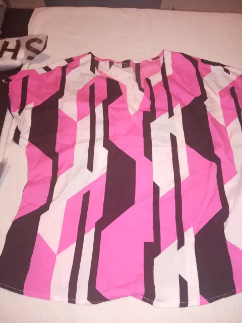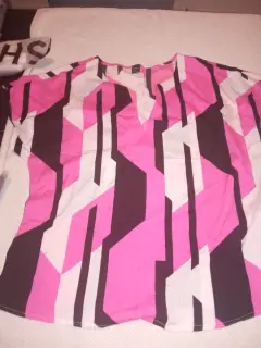 Blusa moderna en talla mediana, color rosa con negro, las talla de busto es 110cm cintura 100cm y cadera 95cm.La prenda es totalmente nueva, a estrenar, La tela es Algodón/Poliéster.