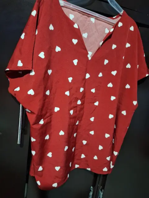 Bonita blusa Shein roja con corazones, Talla M. Fue utilizada una vez