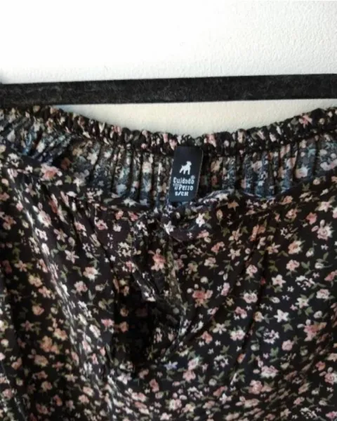 Blusa son hombros, manga 3/4 dice talla Chica pero le va mejor a una M, estampado floreado, ajustable de la parte superior