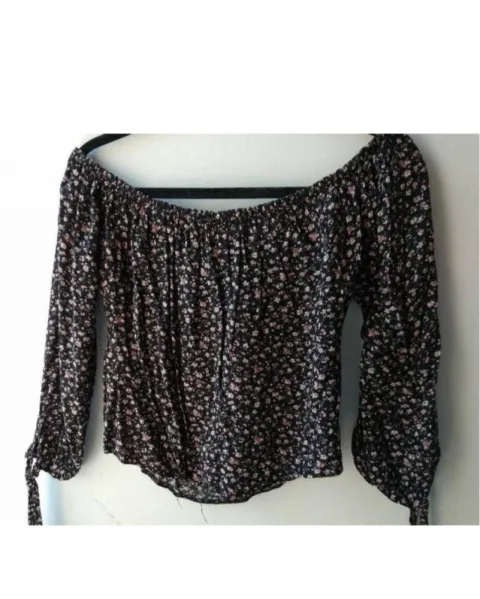 Blusa sin hombros. Blusa son hombros, manga 3/4 dice talla Chica pero le va mejor a una M, estampado floreado, ajustable de la parte superior