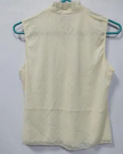 Bonita blusa sin manga color crema o beige, súper fresca. Con botones al frente y detalles en encaje. Muy elegante! Etiquetado como L, sin embargo queda muy bien a tallas chicas y medianas. Medidas hombros 35 cm y axilas 46 cm. Marca Nine West