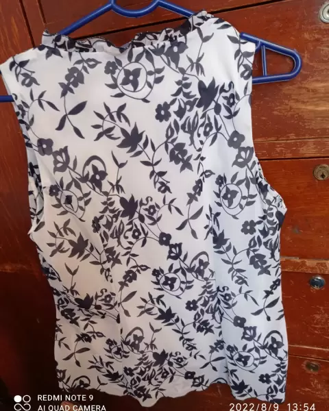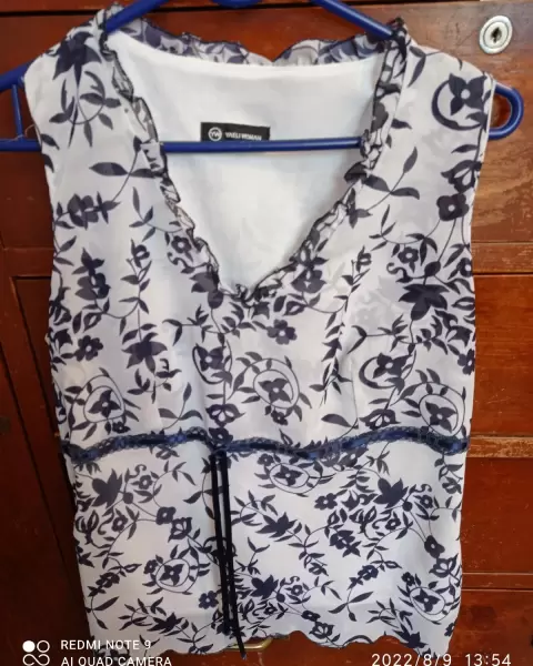 ⭐ Bonita blusa sin mangas,con estampado azul marino de flores,con forro y listón coqueto ✨🤗✨será para ti quizás 👉🏻⭐