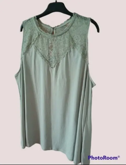 Blusa sin mangas con encaje. Blusa casual con cuello de encaje, tiene sus botones de repuesto tela tipo licraMedidas tomadas en plano 📝Axila a axila 56 cmLargo 73cm.