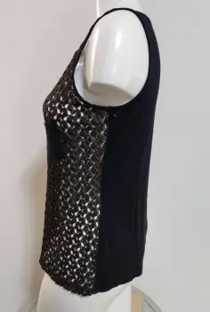 Linda blusa sin mangas combina mech en negro y dorado en la parte de adelante,en perfectas condiciones:madidas:axila a axila-39cm./largo-56cm.(más lo que estira la tela)