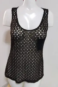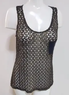 Blusa sin mangas en mech. Linda blusa sin mangas combina mech en negro y dorado en la parte de adelante,en perfectas condiciones:madidas:axila a axila-39cm./largo-56cm.(más lo que estira la tela)
