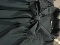 Elegante blusa en poliéster negro sin mangas y moño de adorno. Con botones delanteros y pinzas de adorno ala altura del moño.