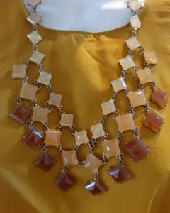 Blusa larga que llega abajo de la espalda, sin mangas, cuello redondo, con cierre en la parte atrás y color mostaza. Tela suave y no se transparenta. *el collar no va incluido pero en caso de que lo quieran aumenta el costo $50.