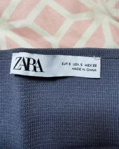Blusa straple tela tipo stretch, queda pegadito, tiene un color azul tipo gris.