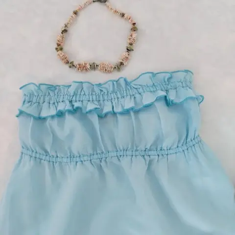 Blusa straples de Lino y algodón. Hermosa blusa disponible en tono azul claro, straple, luce súper bonita. Tiene combinación de tela 55% Lino y 45% algodón, es súper fresca. Talla S y queda también a M porque queda suelta, el resorte estira bastante. Largo de la blusa: 60 cm.