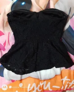 Blusa strapless Shasa. Hermosa blusa estraple try silicón en la parte del pecho contiene su relleno en la parte de abajo trae como tipo olán se ve muy bonito, los detalles se ven en las fotos ya que viene con pelusita qué se le fue haciendo cuando se lavaba Pero eso no afecta su uso se nota en las fotos