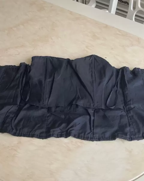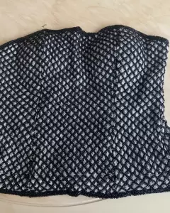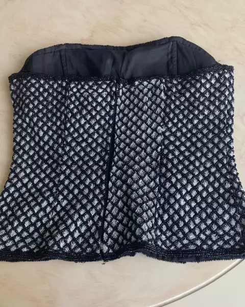 Blusa strapless T/S. Negro, con hilos plateados, 100% seda, con bordado en chaquira, para fiesta, muy elegante, de axila a axila 40 largo 36 cm.