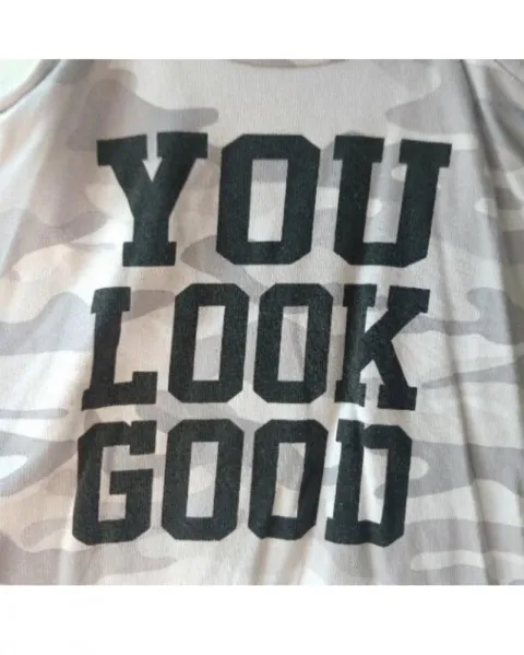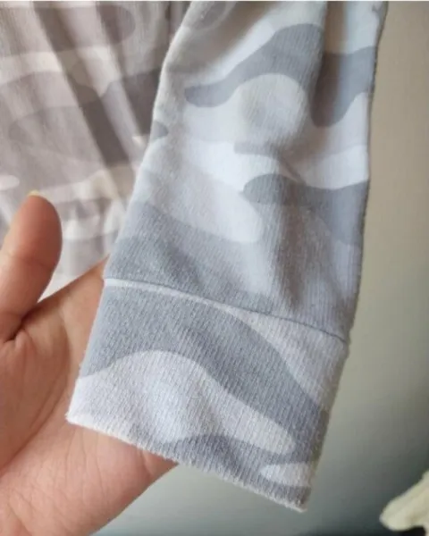 Blusa Sudadera sin hombros, talla L, también le queda a una M, estampado militar