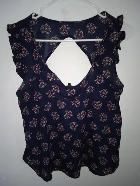Blusa tela ligera con escote en espalda, es suelta , el escote en frente es redondo y atrás es un rombo , tiene pequeñas flores