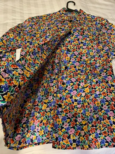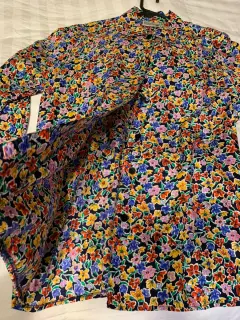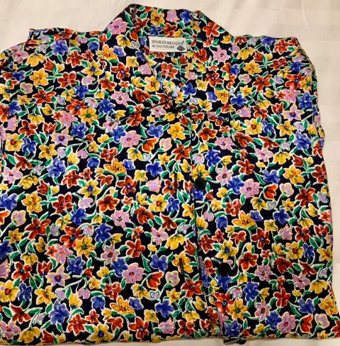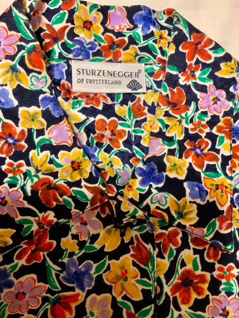 Blusa Suiza floreada. Hermosa y original blusa, comprada en suiza.Manga larga, 100% seda, botones al frente.Fondo negro.