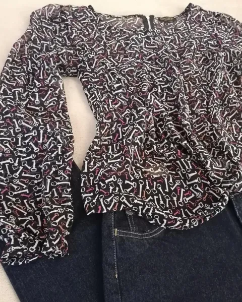 Blusita de transparencia con estampado, cierre en espalda, super fresca y versátil ✨Sin detalles.