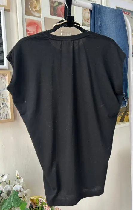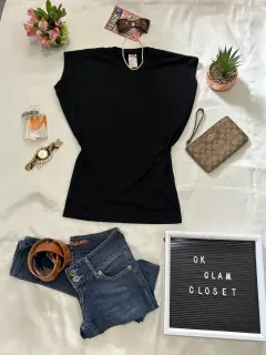 Hermosa blusa sexy jeans de tela color negro, cuello redondo, manga corta, no incluye accesorios