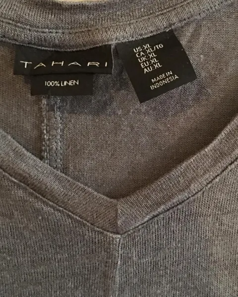 Blusa TAHARI gris XL lino. Blusa TAHARI gris XL lino, tela 100% lino, 45cm axila 60 cm largo, 65cm largo trasero