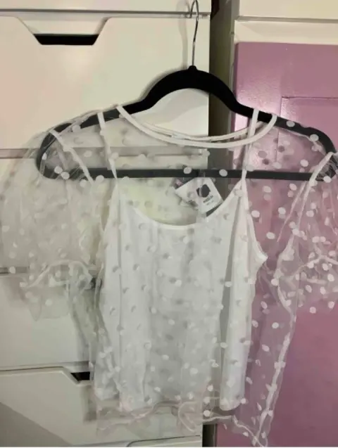 Blusa Talla mediana Cklass. El fondo está muy muy delicado y se rompe súper fácil (recomiendo que ocupen otro fondo) a pesar de que es nueva la mando lavada y sin etiquetas (se mandan aparte) Acepto ofertas justas y razonables (si vas a ofertar y acepto tu oferta es porque la vas a comprar) Me urge vender mi ropita, recuerda que te puedo hacer paquete de varias prendas y darlas a buen precio 😁