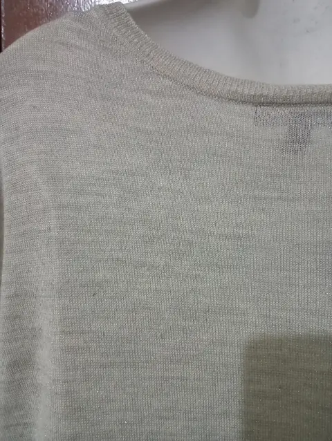 BLUSA DE LANA, ACRÍLICO,NYLON Y METÁLICO USADA BUEN ESTADO CON DESTELLOS PLATEADOS MIDE 46 CM DE AXILA A AXILA Y 72 DE LARGO