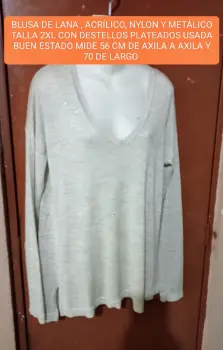 BLUSA TALLA PLUS 1XL. BLUSA DE LANA, ACRÍLICO,NYLON Y METÁLICO USADA BUEN ESTADO CON DESTELLOS PLATEADOS MIDE 46 CM DE AXILA A AXILA Y 72 DE LARGO
