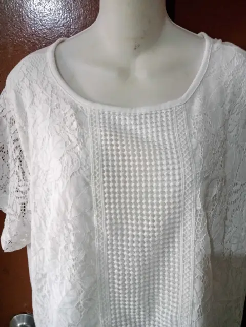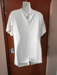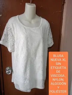 BLUSA TALLA XL. BLUSA TALLA XL NUEVA SIN ETIQUETA DE VISCOSA, POLIÉSTER, NYLON, ALGODON Y SPANDEX BLANCA MIDE 54 CM DE AXILA A AXILA SIN ESTIRAR Y 68 CM DE LARGO