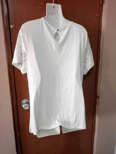 BLUSA TALLA XL NUEVA SIN ETIQUETA DE VISCOSA, POLIÉSTER, NYLON, ALGODON Y SPANDEX BLANCA MIDE 54 CM DE AXILA A AXILA SIN ESTIRAR Y 68 CM DE LARGO