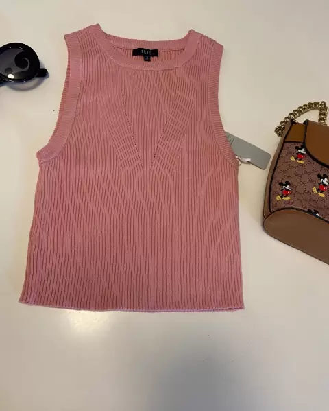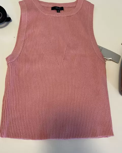 Blusa tejida. Blusa rosa, sin mangas, la tela estira bastante, así que también le queda a una talla M. Nueva