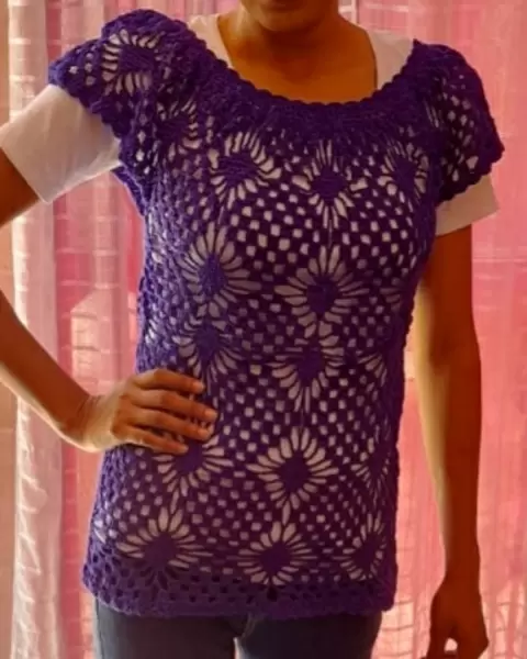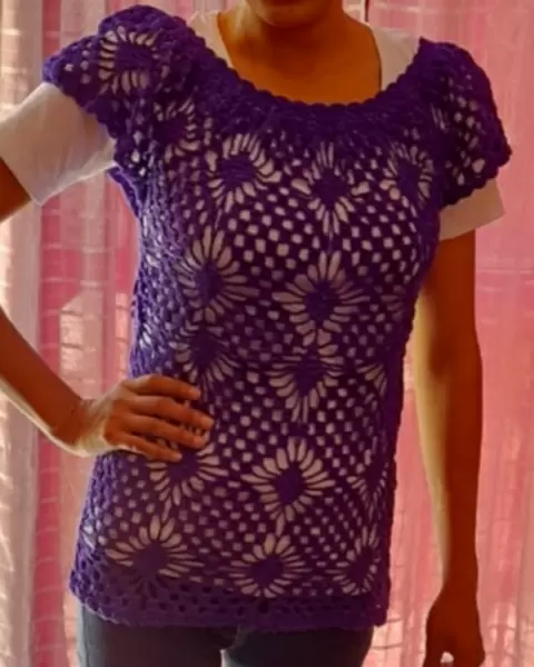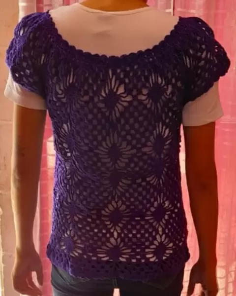 Blusa tejida, super hermosa y a la moda.Es talla chica, el estambre no es comun es un tipo mate y delgadito no afelpado.