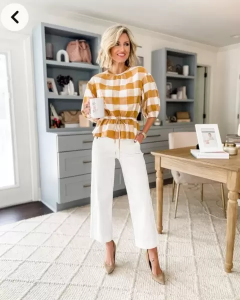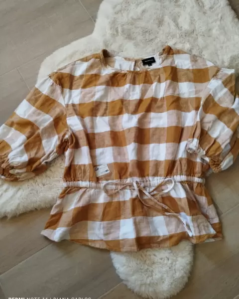 Bonita blusa en tela de lino, con botón en la espalda, jareta ajustable en la cintura.