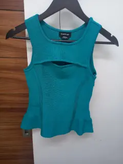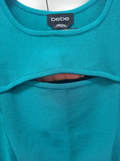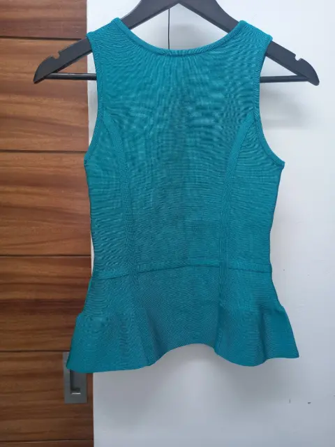 Blusa tipo bandage marca bebe. Color esmeralda corte plepu, ajustada tela tipo bandage stretch con el icónico escote de ojal en busto de la marca súper prenda cierre al costado talla S mide de axila axila 37cm largo desde hombro 55cm