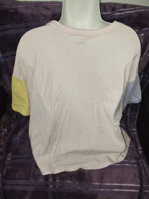 Blusa tipo crop top. Bonita blusa tipo crop top de Mickey mouse, tela súper suavecita, de resca, mangas anchas, color amarillo y lila, estampado Mickey mouse súper colorido, marcado como talla M-G, medidas en la última imagenIdeal para un outfit moderno y colorido 🌈
