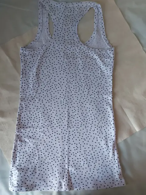 Blusa tipo deportivo. Blusa sin mangas tipo deportiva color blanca con lunares en color azul, elástica, nueva.