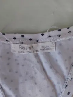 Blusa sin mangas tipo deportiva color blanca con lunares en color azul, elástica, nueva.