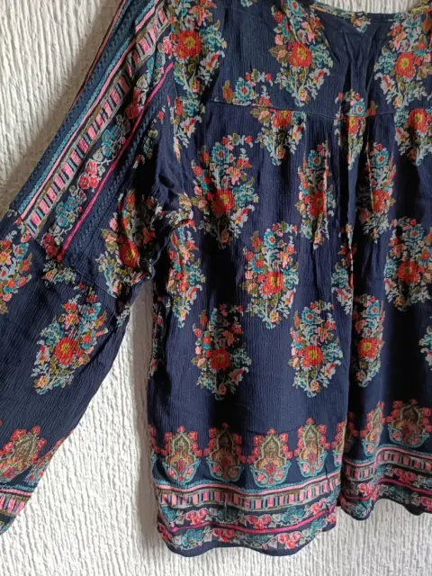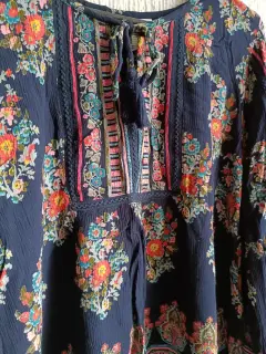 Blusa tipo Hindú azul marino con estampado de flores, manga larga, combina con todo!!! Es talla Grande.