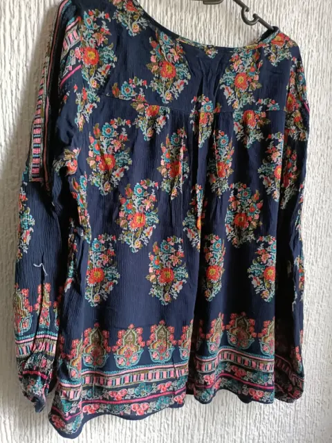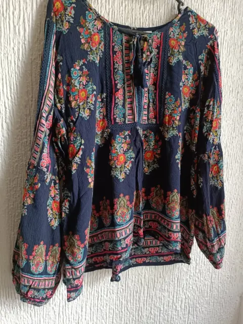 Blusa tipo Hindú azul marino.. Blusa tipo Hindú azul marino con estampado de flores, manga larga, combina con todo!!! Es talla Grande.