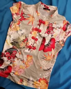 Blusa tipo oriental. Preciosa blusa estilo oriental, muy fresca 😍 no especifica talla pero da a una XS. Dejo las medidas: axila-axila 41 cm, hombro-hombro 34 cm y largo 51 cm.Te invito a visitar mi closet y si te gusta algo mas te armo un paquete 😉