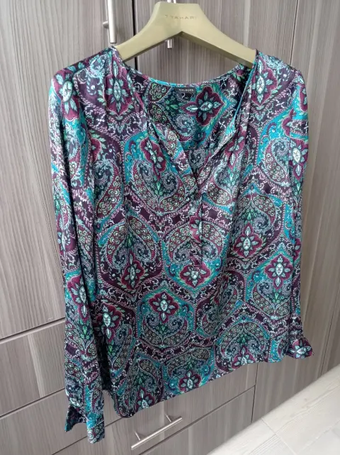 Blusa tipo seda. Hermosa blusa tipo seda en excelente estado, manga larga ideal para este verano, cuello v , super linda.
