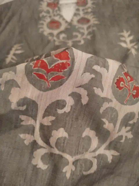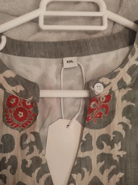 Blusa tipo Soho. Blusa manga larga, cuello V estampado tipo Soho flojita muy cómoda, color verde 2 xl