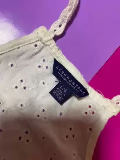 Blusa tipo top aero. Blusa aeropostale blanca con diseño hermoso, sin detalles, puede quedar hasta un M sin problema😍