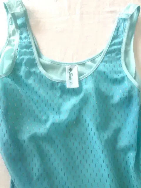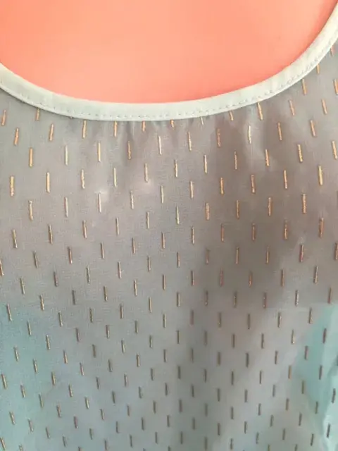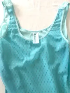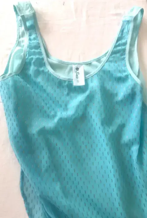 Blusa tirantes azul con 2 diferentes tonos de azul con detalles color plata talla S, súper fresca la tela es transparente, está abierta en los costados. Ideal para la temporada