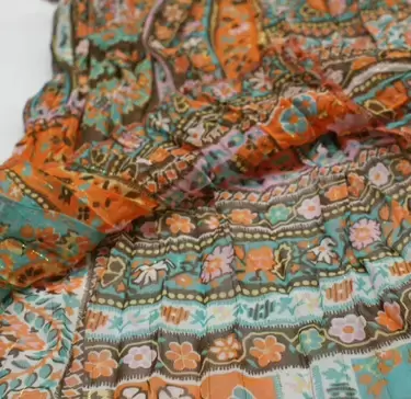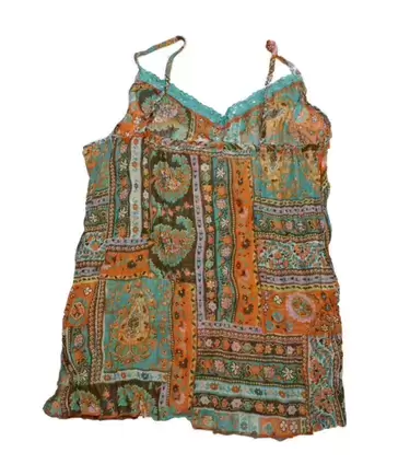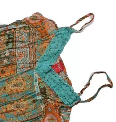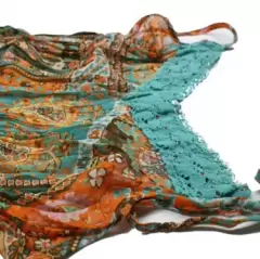 Blusa tirantes naranja y azul Talla S. Blusa tirantes en tonos café, naranja, azul etc con flores, tiene encaje azul claro en el cuello es tipo V, tela fresca y tipo bohemia. Excelente para primavera verano.