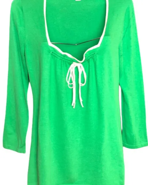 Blusa Topknot Banana Republic. Blusa en tela verde con jareta decorativa en tela blanca , hermoso color y diseño.