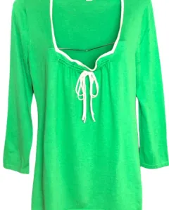 Blusa en tela verde con jareta decorativa en tela blanca , hermoso color y diseño.