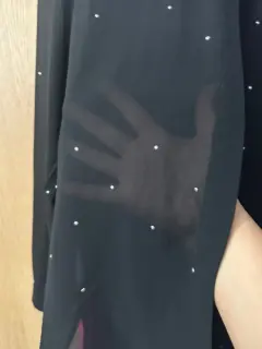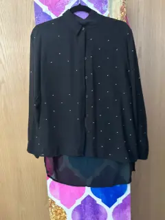 Blusa negra tela xifon transparente, hermosa , con piedras en toda la tela manga larga