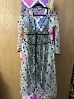 Blusa transparente con estrellas , es de tul y se abrocha del pecho,manga larga , el vestido se vende por separado.